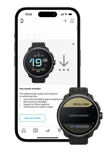 When an update is available and your watch is connected with Suunto app, the software update will be downloaded to the watch automatically.