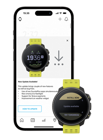 When an update is available and your watch is connected with Suunto app, the software update will be downloaded to the watch automatically.