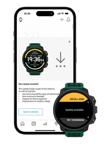 When an update is available and your watch is connected with Suunto app, the software update will be downloaded to the watch automatically.