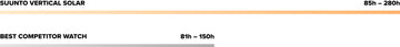Suunto Vertical 的電池續航時間領先於競爭對手:鈦太陽能款可在最準確的 GPS 設置下進行 85 小時的鍛煉跟踪,不銹鋼款可支持 60 小時。