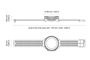 125-175 mm (accessory strap -215 mm) |